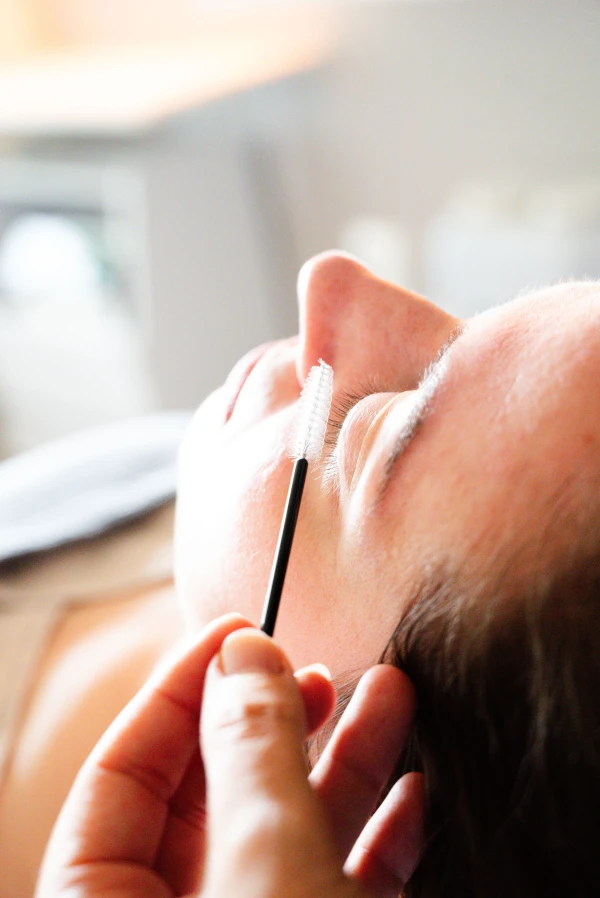 Tijdens de behandeling worden je wimpers gelift met siliconen pads die aangebracht worden tijdens de wimperlift.